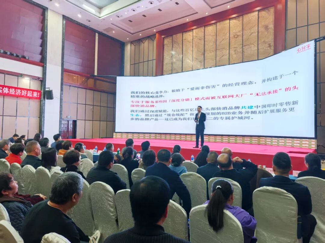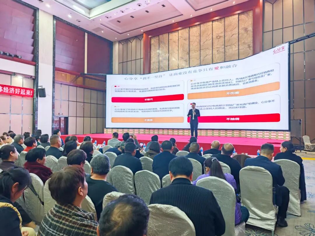 开怀·心分享公司创始人尹朝林先生携公司全体员工、股东、经销商及意向经销商代表齐聚一堂。会议现场气氛热烈,合作共识在此凝聚,共谱合作共赢新篇章。