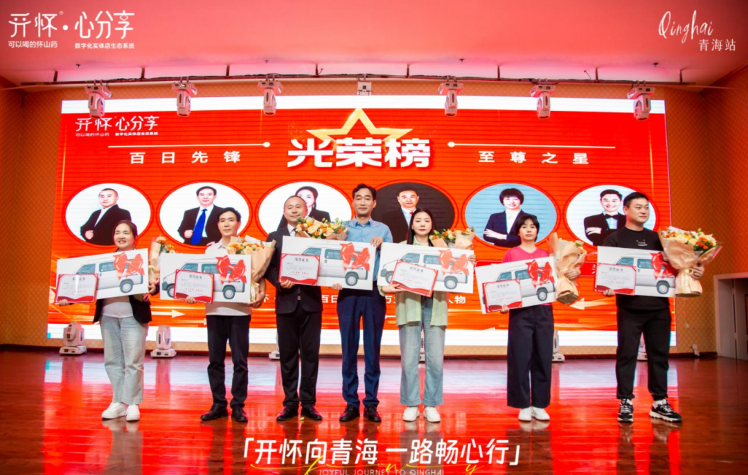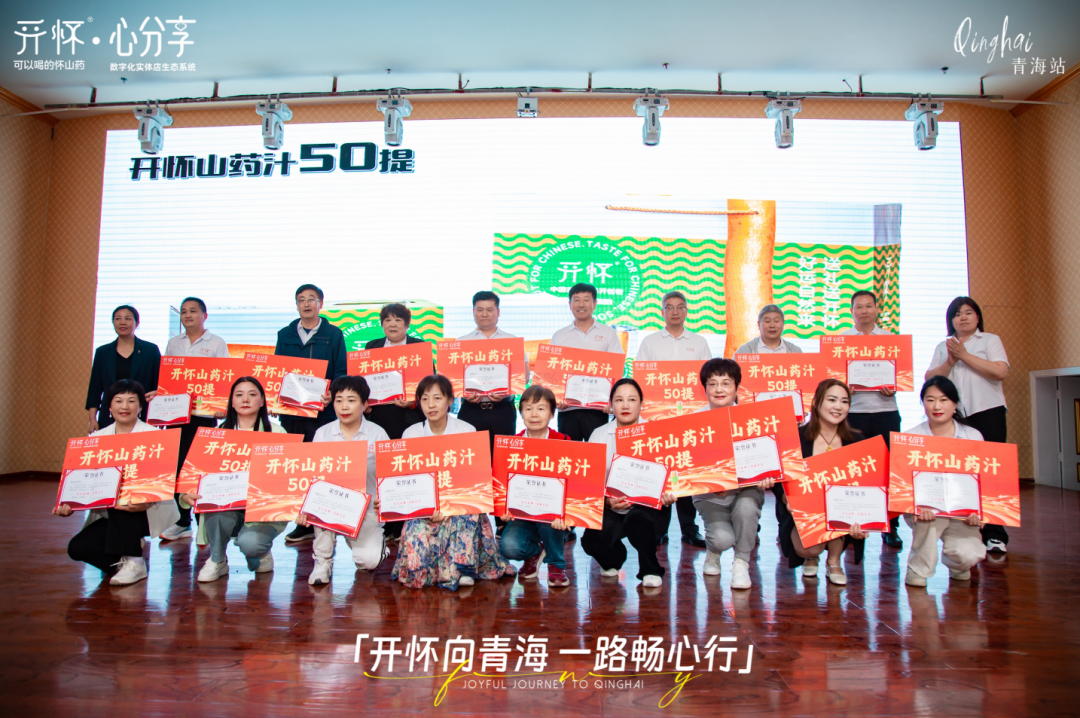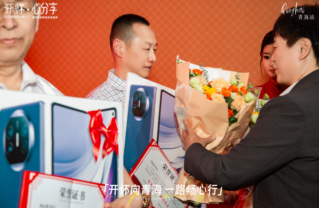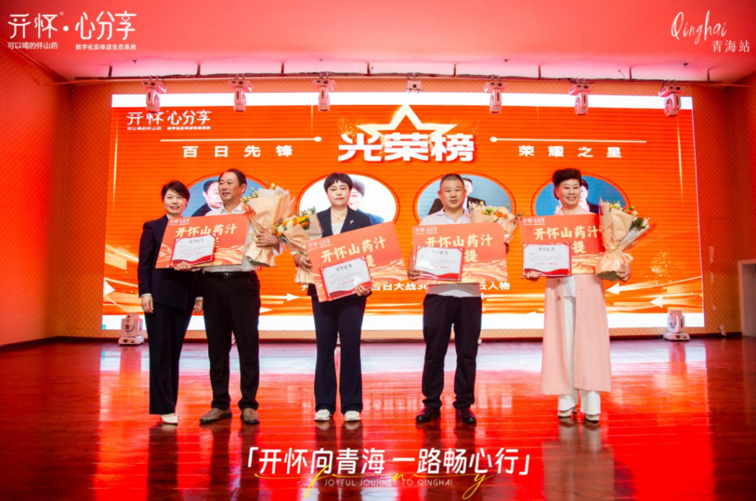 随后,高来起、王春平、张永攀、刘进枝4位业绩突破30万元的市场精英昂首登台,开怀·心分享为其颁发荣誉证书及“150提开怀山药汁”奖励。他们以精准的市场洞察力与高效执行力,在终端拓展中树立标杆,成为团队攻坚的智慧引擎。