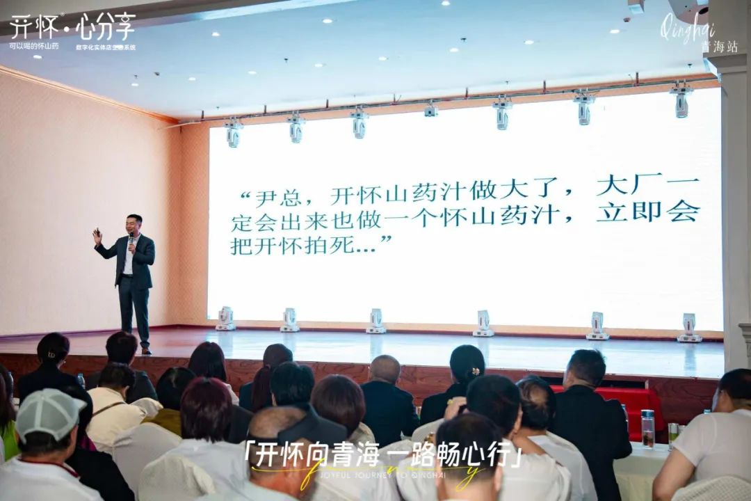 盛会于激昂乐章中启幕。开怀·心分享董事长尹朝林先生隆重登台,向大家分享自己的创业初心,从可口可乐离职,怀揣打造“世界上最健康饮品”的坚定信念,以千年药典为基,深研怀山药汁药食同源之妙,将健康理念深度融入产品每一环节,让开怀山药汁润泽现代身心。尹董讲道:思维决定认知,认知决定选择,选择决定命运。为社会创造价值的事业,坚持去做,就一定能成功!