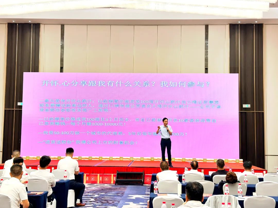 阜南经销商王化玮王总登台分享,在分享中展现出十足的信心与决心。他表示:“自己一定要把开怀事业做好,要做就做第一!”并承诺会以专业、专注、专心的态度,全身心融入开怀·心分享事业,坚信一定能带领当地市场让开怀山药汁和心分享模式取得成功!