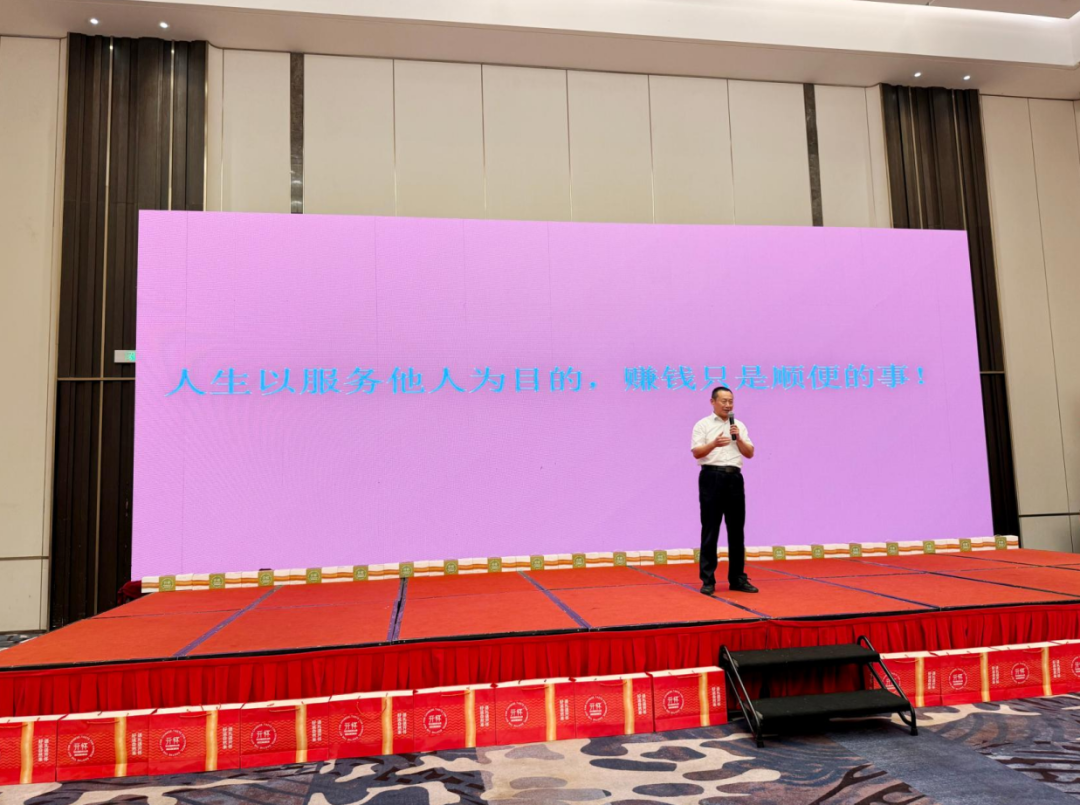阜阳经销商代表万总登台发言,他深情讲述了自己与开怀的结缘历程,从最初结识开怀,到逐步认可开怀的产品品质与品牌理念,再到最终全身心投入开怀事业,每个阶段都充满对品牌的信任与热爱。他热情的分享让全场感受到开怀的独特魅力,并表示将积极带动阜阳百姓创业就业,坚信开怀·心分享必能在阜阳做大做强!